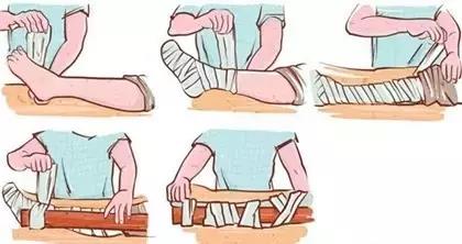 3、妥善固定:不要盲目移动身体,尽快把伤到的肢体用夹板固定住。夹板可用木片或折叠起来的硬纸板制成,放在受伤的肢体下面或侧面,用三角形绷带、皮带或领带缠住夹板和受伤的肢体。避免缠得太紧,避免用细绳子固定,这些都可能阻碍血液循环。
