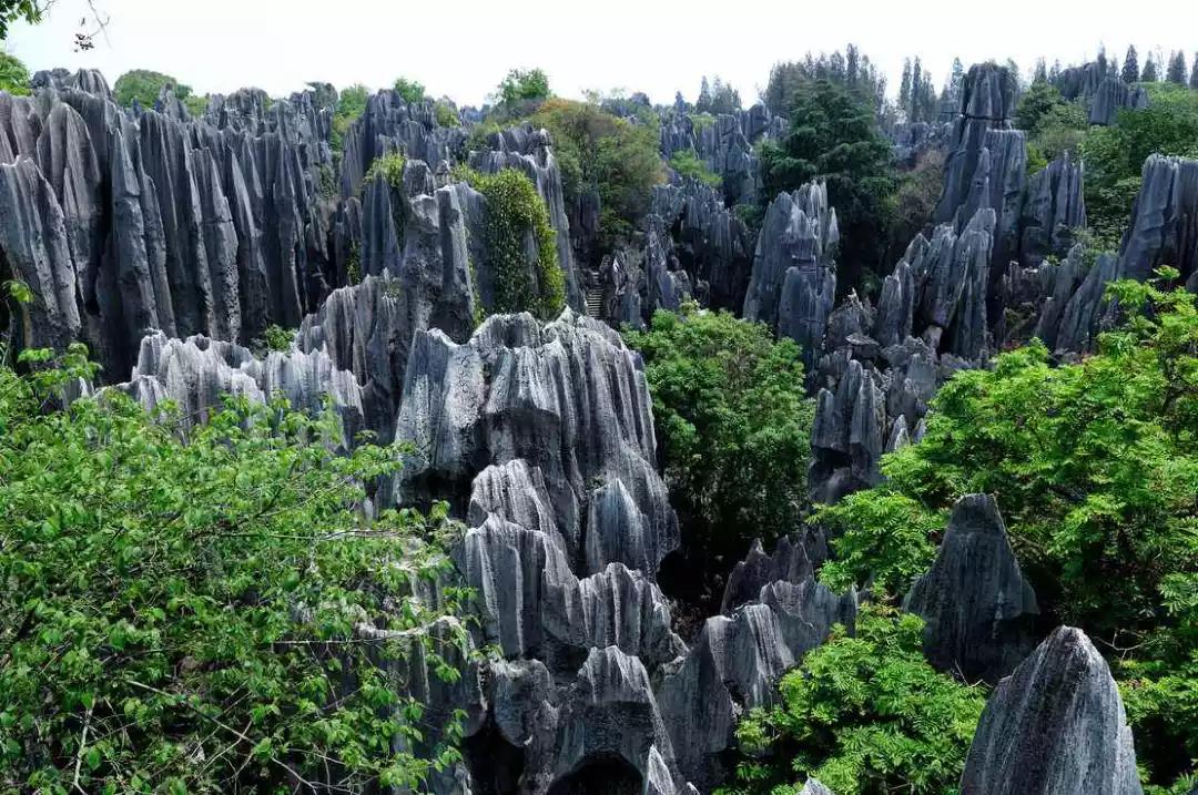 【石林地貌】石林因其发育演化的古老性、复杂性、多期性和珍稀性以及景观形态的多样性,成为世界上反映此类喀斯特地质地貌遗迹的典型范例和“石林”二字的起源地,并具有很高的旅游地学科普价值。云南石林保存和展现了最多样化的喀斯特形态,高大的剑状、柱状、蘑菇状、塔状等石灰岩柱是石林的典型代表,此外还有溶丘、洼地、漏斗、暗河、溶洞、石芽、钟乳、溶蚀湖、天生桥、断崖瀑布、锥状山峰等,几乎世界上所有的喀斯特形态都集中在这里,构成了一幅喀斯特地质地貌全景图。