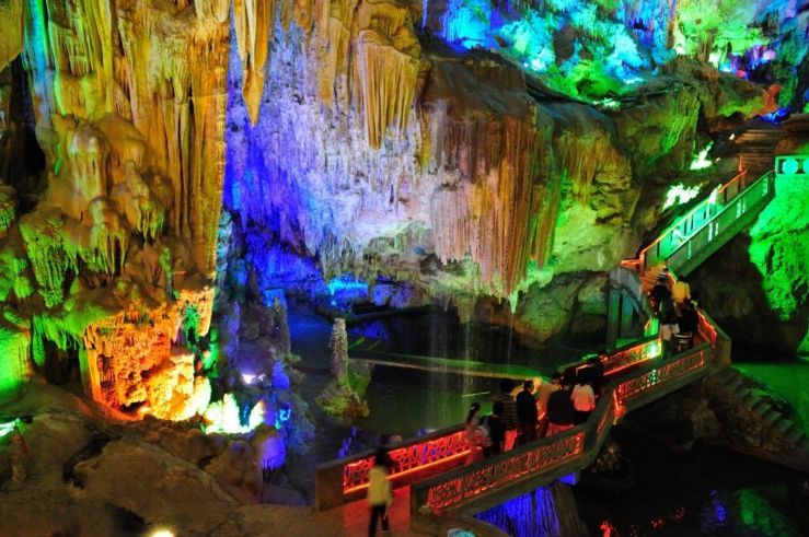 2、泸西阿庐古洞:阿庐古洞被誉为“云南第一洞”, 又名泸源洞。是一组奇特壮观的地下溶洞群,即地下喀斯特地貌,与石林 景观相似,石林在地上,阿庐古洞则在地下,它是亚洲最壮观的天然溶洞穴之一。